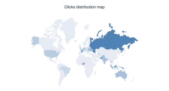 • Statistik pengedaran klik menunjukkan negara yang mempunyai kadar trafik pautan afiliasi yang tertinggi.
