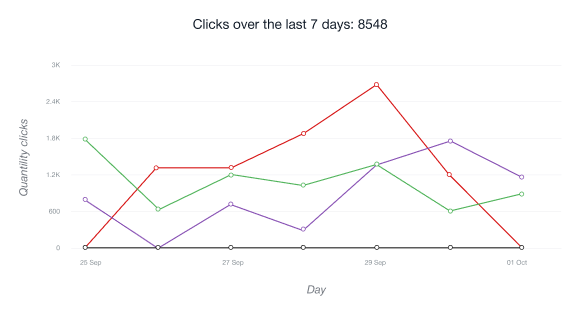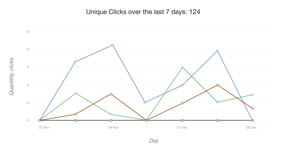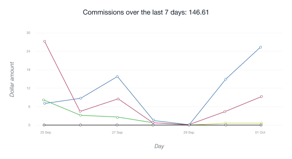 • Carta Klik Unik menunjukkan bilangan pengguna yang mengikuti pautan afiliasi anda buat kali pertama dari alamat IP yang diberikan dalam tempoh 24 jam yang lalu.