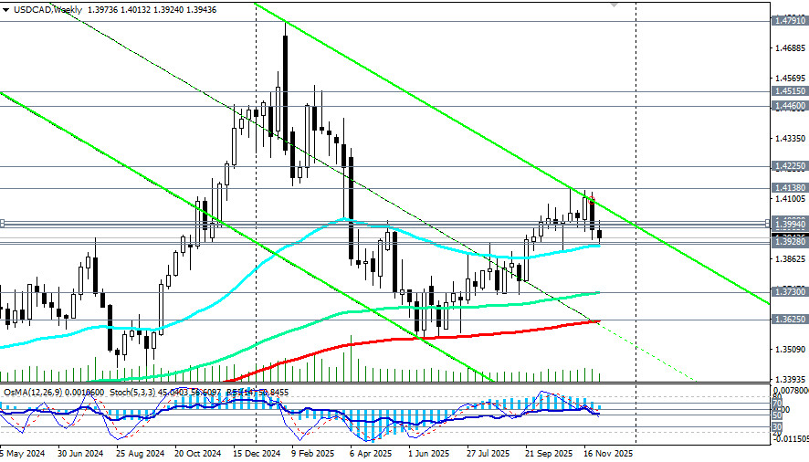 Важными уровнями поддержки также являются ключевые уровни 1.3928 (ЕМА144 на дневном графике), 1.3920 (ЕМА200 на дневном графике). Если эта поддержка устоит, пара может продолжить консолидацию в боковом коридоре между уровнями 1.3920 и 1.3985 (ЕМА50 на дневном графике). Однако прорыв уровней поддержки 1.3920, 1.3900 откроет путь к снижению до более низких уровней поддержки, таких как 1.3800, 1.3730 (ЕМА144 на недельном графике) и, возможно, даже 1.3700, 1.3625 (ЕМА200 на недельном графике), отделяющих долгосрочный бычий рынок пары от медвежьего.