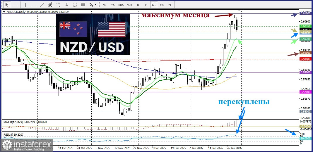 Опасения за независимость ФРС в последние недели толкали доллар США к многолетним минимумам, подпитываемые критикой монетарной политики со стороны президента Дональда Трампа. Хотя смена лидера воспринимается как шаг к институциональной стабильности, политическая напряженность сохраняет премию за риск, ограничивая ралли доллара. Коррекция NZD/USD выглядит как краткосрочная пауза, а не смена глобального тренда. Валютная пара остается чувствительной к изменениям общего настроения на рынке валют этих стран.
