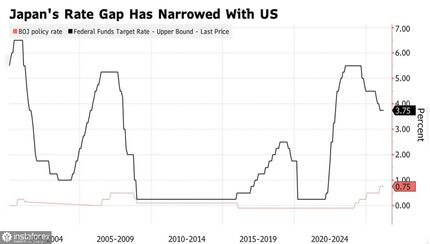 Динамика ставок ФРС и Банка Японии
