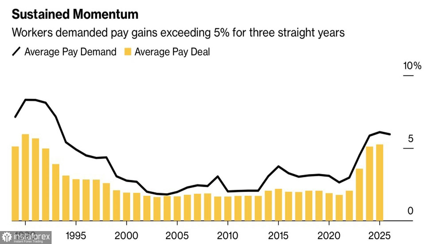 Тем более что профсоюзы требуют значительного повышения зарплат. Крупнейший из них Ренго хотел бы видеть увеличение оплаты труда в 2026 на 5,94%. Это близко к прошлогоднему запросу в 6,09%. Представляющие небольшие компании профсоюзы и вовсе называют цифру в +6,64%, максимальную с 1994.