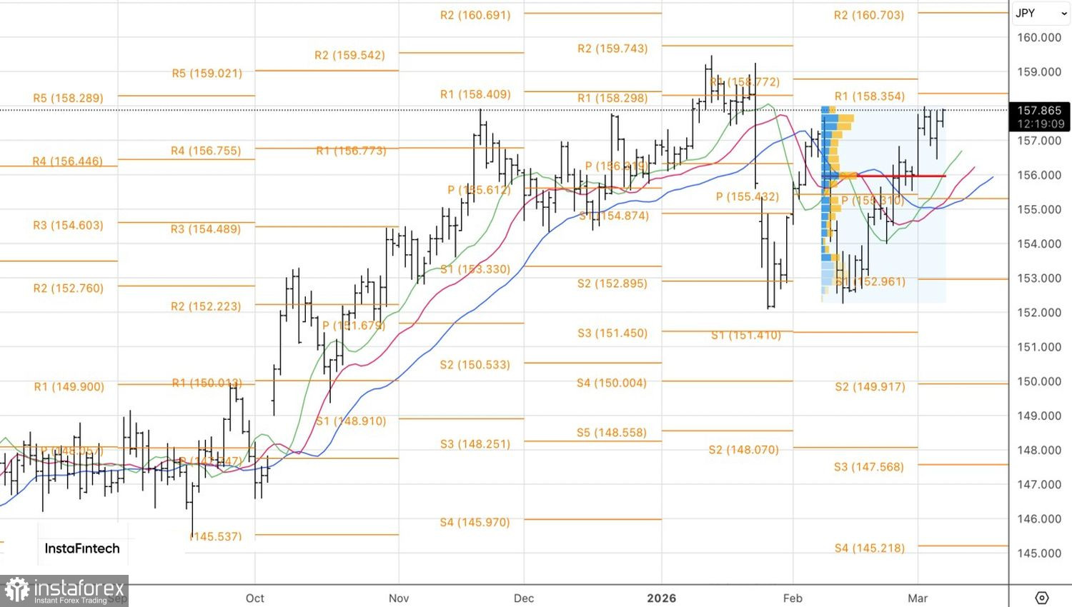 Согласно инсайду Bloomberg, чиновники Совета управляющих сохраняют приверженность позиции, что цикл монетарной рестрикции продолжится при условии выполнения экономических прогнозов BoJ. При этом полпреды центробанка не горят желанием повышать ставку овернайт в марте. Ключевым триггером ее изменения могут стать события на Ближнем Востоке. Все это соответствует тому, что сказал Кадзуо Уэда, и сохраняет широкий дифференциал стоимости заимствований между США и Японией.