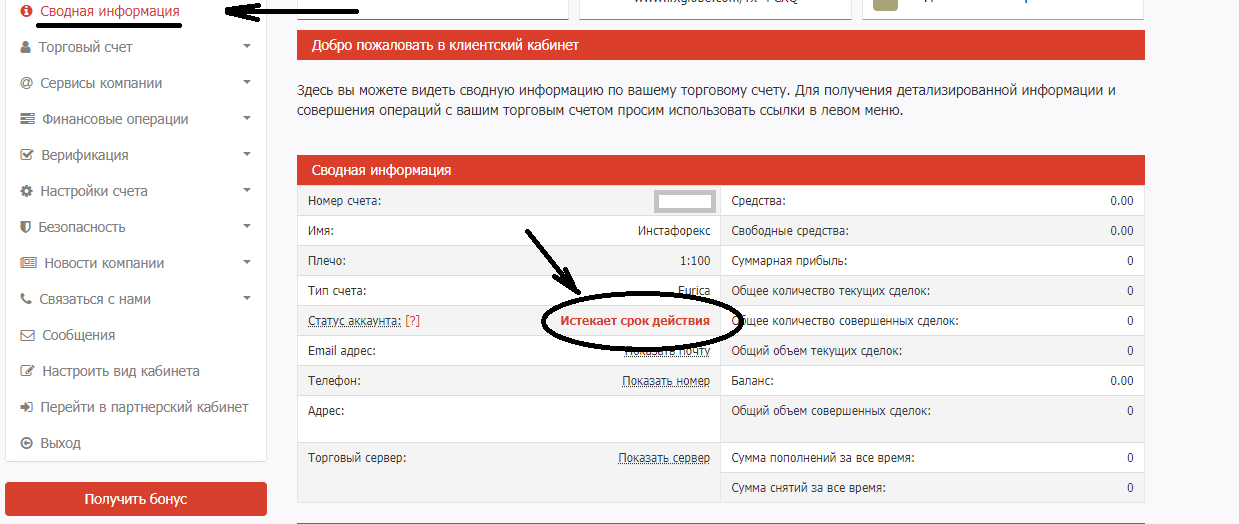 За месяц до истечения срока действия документа, загруженного на верификацию вашего торгового счета, в клиентском кабинете появляется статус  “Истекает срок действия”.