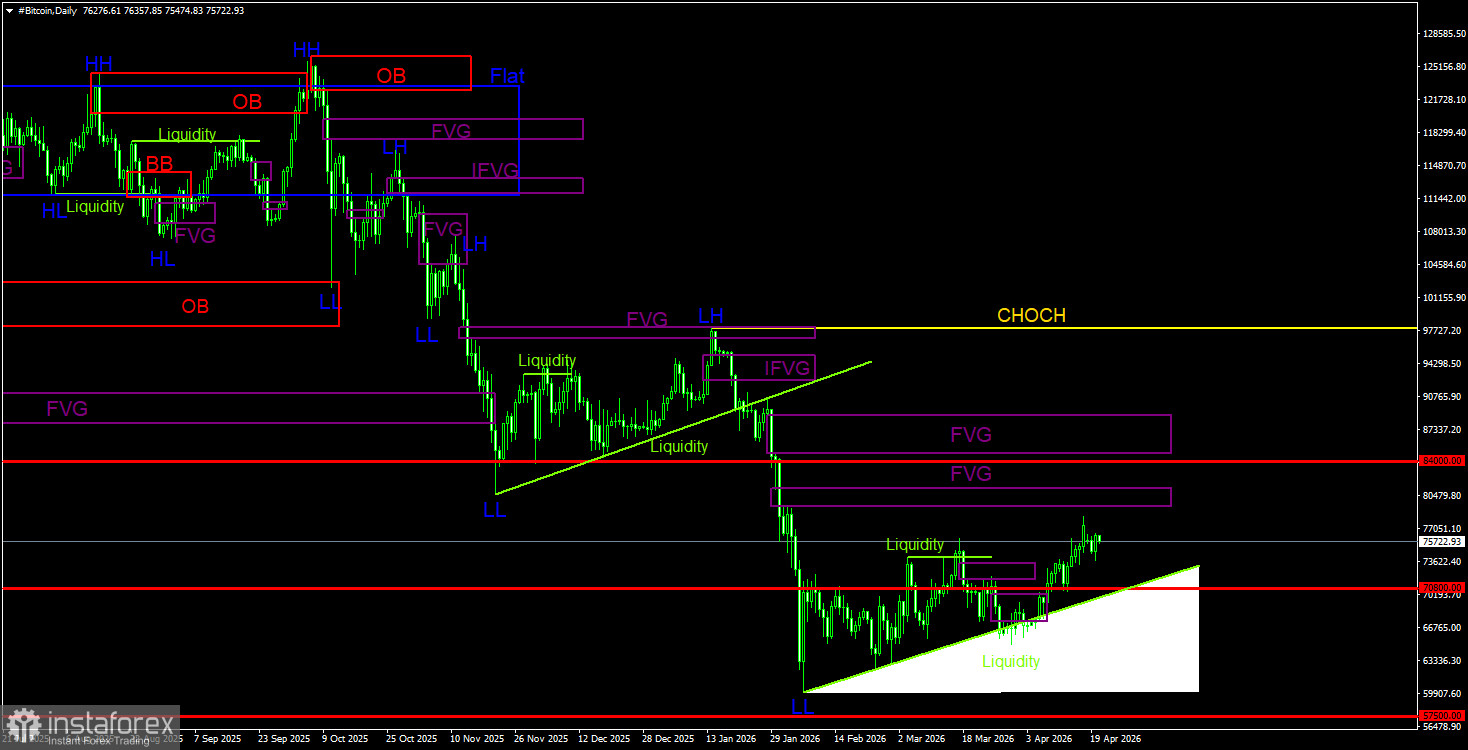 Торговые рекомендации по Биткоину(Bitcoin) на 21 апреля по системе ICT