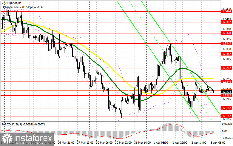 Давление на рисковые активы, в частности на британский фунт, никуда не делалось, так как геополитическое напряжение на Ближнем Востоке только нарастает. Многие военные эксперты считают, что наземная операция США на территории Ирана начнется в ближайшие семь дней, так что ни о каком завершении войны и речи идти не может. Все это будет и дальше оказывать давление на британский фунт. Сегодня нет никакой статистики по Великобритании, так что давление на пару GBP/USD наверняка сохранится. При сценарии дальнейшего снижения фунта лишь формирование ложного пробоя в районе ближайшей поддержки 1.3213 приведет к хорошей точке входа в длинные позиции с восстановлением к уровню 1.3248. Прорыв и обратный тест сверху вниз этого диапазона увеличат шансы на укрепление GBP/USD, что приведет к сносу стоп-приказов продавцов и подходящей точке входа в длинные позиции с возможностью выхода к 1.3282, где ожидаю уже более активного проявления медведей. Самой дальней целью будет область 1.3317, где собираюсь фиксировать прибыль. При сценарии снижения GBP/USD и отсутствия активности со стороны покупателей на 1.3213, давление на фунт только увеличится, что приведет к движению в район следующей поддержки 1.3182. Лишь формирование там ложного пробоя будет подходящим условием на открытие длинных позиций. Покупать GBP/USD сразу на отскок собираюсь от минимума 1.3162 с целью коррекции в 30-35 пунктов внутри дня.